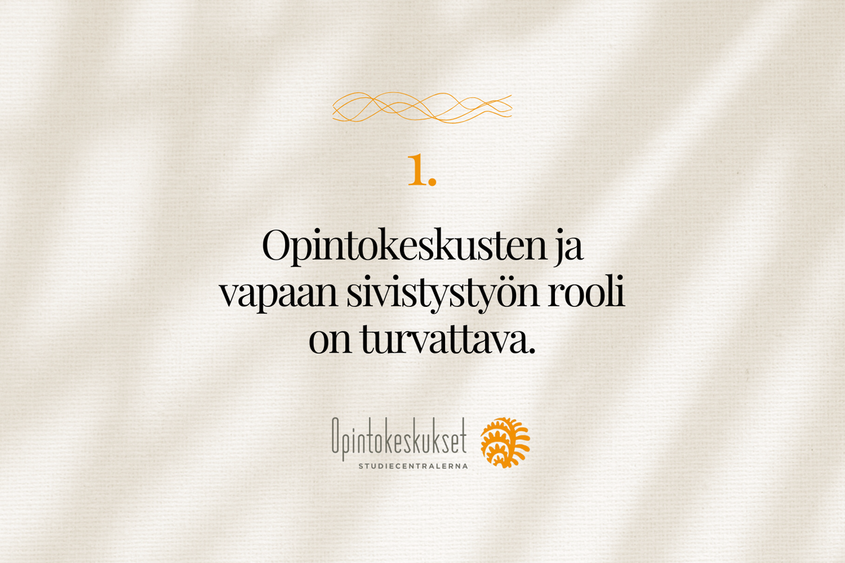 1. Opintokeskusten ja vapaan sivistystyön rooli on turvattava.